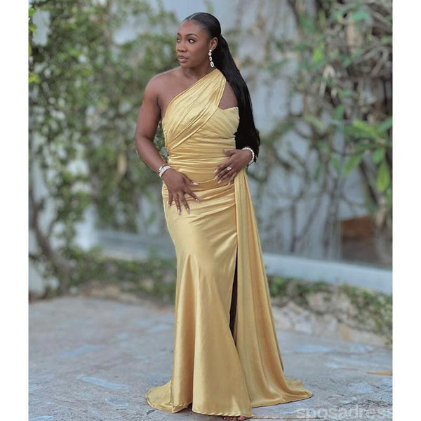 Sexy Gold Mermaid One Shouder Maxi Long Bridesmaid Dresses,Party Dress, WG1903
